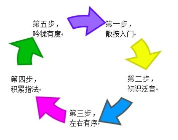 “开指五步”古琴教学法以张子盛所编著古琴专业教材《琴学门径》为基础,集20年实际教学经验,精心研发。不同于传统教学方法,强调基本功的重要性,采用拆解性训练,尤其注重左右手在基础阶段的分开练习,均衡进步;散音、按音、泛音随进度逐步增加,进阶清晰。对每个基础指法动作都有较高要求。科学严谨,体系完备,入门快捷,成材率高,不但可为专业学院使用,也适用于广大古琴爱好者。