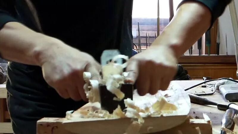 汤乔:说实话,何明威先生一直强调制琴有法,制琴也无法。制琴就是在有法与无法间把握平衡的艺术。换句话说,师父可以授徒以规矩,但做不到授徒以巧。制琴没有一个万能的公式一了百了。而是像一个老中医,同一个病不同人用的方子不可能完全一样。这世界上就没有完全相同的两块板子,怎么可能会有完全相同的共鸣箱呢?何老师给自己制琴工作间起名“斫问斋”,斫而问之,问而斫之,孜孜求索,永无止境。当代克雷莫纳小提琴制琴大师比索洛蒂说过:“我坚信,那些声称掌握了制琴法则和秘密的人,永远也不会做出完美的作品,即使伟大如斯特拉迪瓦里,也用一生不断完善技艺,探寻创新的途径。”