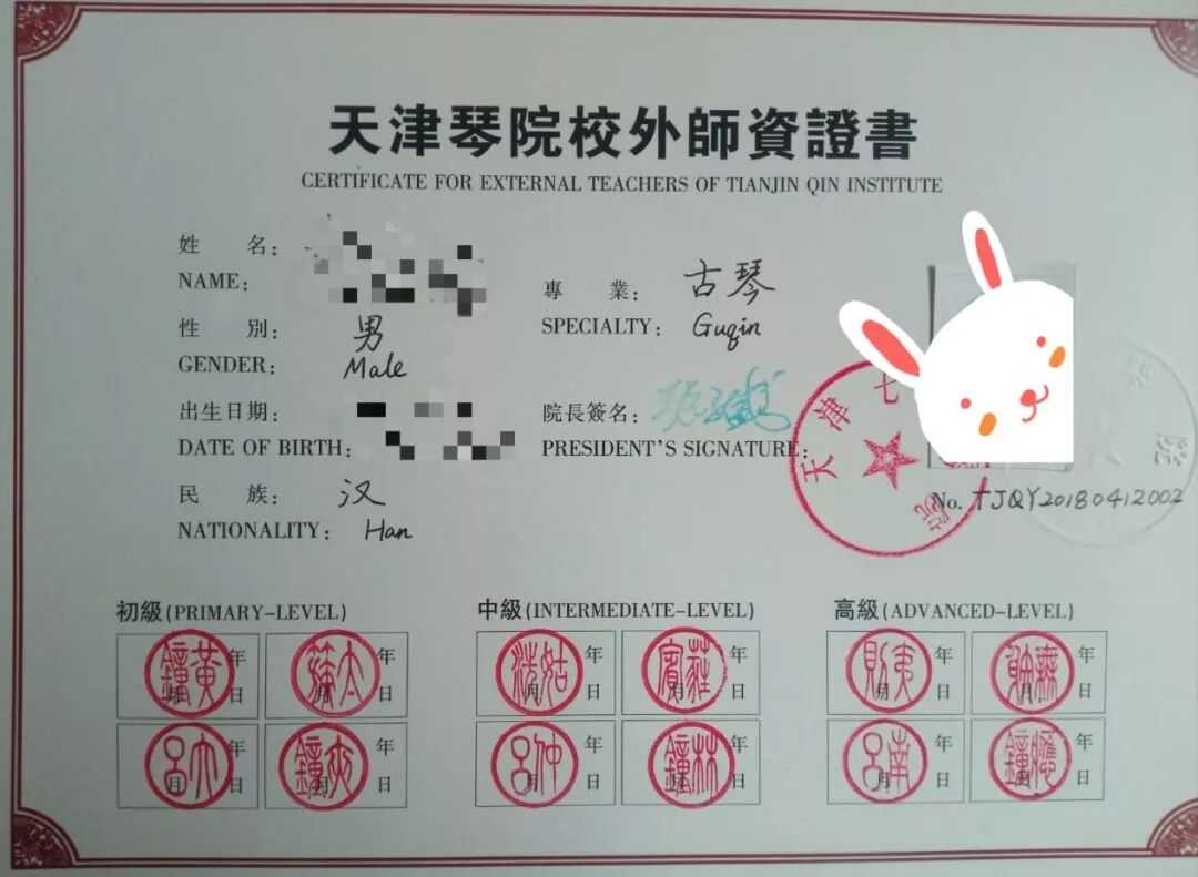 ↑ 天津琴院校外师资证书,水平有几,可得几章,努力啦琴友!